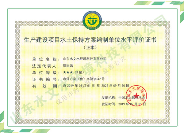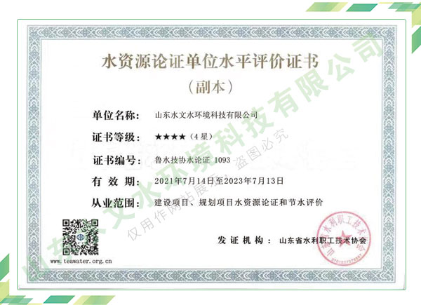 公司擁有水利工程設(shè)計(jì)、水土保持、水文水資源調(diào)查評(píng)價(jià)、水資源論證、建設(shè)項(xiàng)目環(huán)境影響評(píng)價(jià)、市政公用工程施工總承包、水利水電工程施工總承包、電子與智能化工程專業(yè)承包等資質(zhì),2017年通過(guò)質(zhì)量管理體系、環(huán)境管理體系、職業(yè)健康安全管理體系認(rèn)證;2020年被評(píng)為國(guó)家級(jí)高新技術(shù)企業(yè),同年被中國(guó)水利企業(yè)協(xié)會(huì)推薦為第一批“合同節(jié)水服務(wù)企業(yè)”;2021年被山東省、濟(jì)南市評(píng)為 “專精特新”中小企業(yè)。業(yè)務(wù)范圍涉及水利工程設(shè)計(jì);節(jié)水設(shè)計(jì)、改造、水平衡測(cè)試;山洪災(zāi)害調(diào)查;城市水資源調(diào)查評(píng)價(jià);建設(shè)項(xiàng)目水土保持方案編制、監(jiān)測(cè)、驗(yàn)收、水土保持規(guī)劃;水安全保障規(guī)劃、建設(shè)項(xiàng)目水資源論證、規(guī)劃水資源論證;建設(shè)項(xiàng)目環(huán)境影響評(píng)價(jià);入河排污口論證;防洪影響評(píng)價(jià);市政公用工程施工、水利水電工程施工、電子與智能化工程施工等。